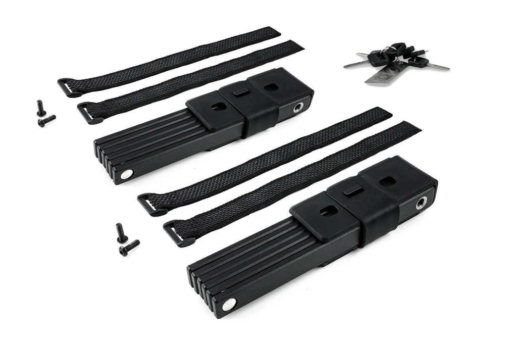 Das ACID RIGID 100 Pure TWIN PACK beinhaltet zwei Faltschlösser, zwei Halter sowie sechs gleichschlieĂende SchlĂŒssel. Die hochsicheren Faltschlösser sind aus speziell gehĂ€rtetem rostfreien Hochleistungsstahl gefertigt und genĂŒgen durch die ART1 Zertifizierung allerhöchsten AnsprĂŒchen. Ein solider, gefederter Bolzen sorgt sowohl fĂŒr eine sehr einfache Handhabung als auch fĂŒr sicheres VerschlieĂen. Durch das schlichte und schlanke Design ist das gewichtsoptimierte 100 cm lange Faltschloss nicht nur handgerecht und griffig, sondern passt nahezu an jedes