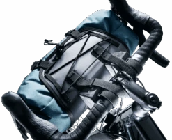 Leichte zweiteilige Handlebar Bag fĂĽr echte Globetrotter aus leichtem, wasserdichtem Packsack mit beidseitigem Roll-Top und Komprimierungsventil sowie Lenkertasche aus strapazierfähigem Material mit elastischem Kompressionszug und Materialschlaufen auf der Oberseite, ermöglicht schnelles Be- und Entladen bei spontanen Zwischenstopps, da die Taschenhalterungen am Fahrrad belassen, während der Packsack mitgenommen werden kann. Die robusten Gurtbänder können dank Klettverschluss zur Verdrehsicherung und mitgelieferter DistanzstĂĽcke an unterschiedlichste Rohrdurchmesser angepasst werden und sind auch fĂĽr Carbon-Fahrräder geeignet.Â