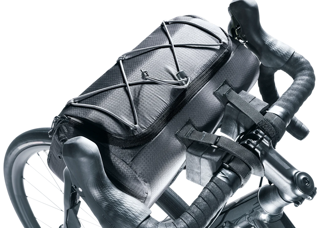Handle Bar fĂŒr Bikepacking-Einsteiger*innen aus strapazierfĂ€higem, recycelten und bluesignÂź zertifizierten Material mit elastischem Kompressionszug zur Fixierung von leicht zugĂ€nglichen GegenstĂ€nden auf der Oberseite, seitlichen ReiĂverschlusstaschen, gerĂ€umigem Hauptfach und reflektierenden Elementen. Die robusten GurtbĂ€nder können dank mitgelieferter DistanzstĂŒcke an unterschiedlichste Rohrdurchmesser angepasst werden und halten die Tasche dank Klettverschluss-Verdrehsicherung stabil an Ort und Stelle.