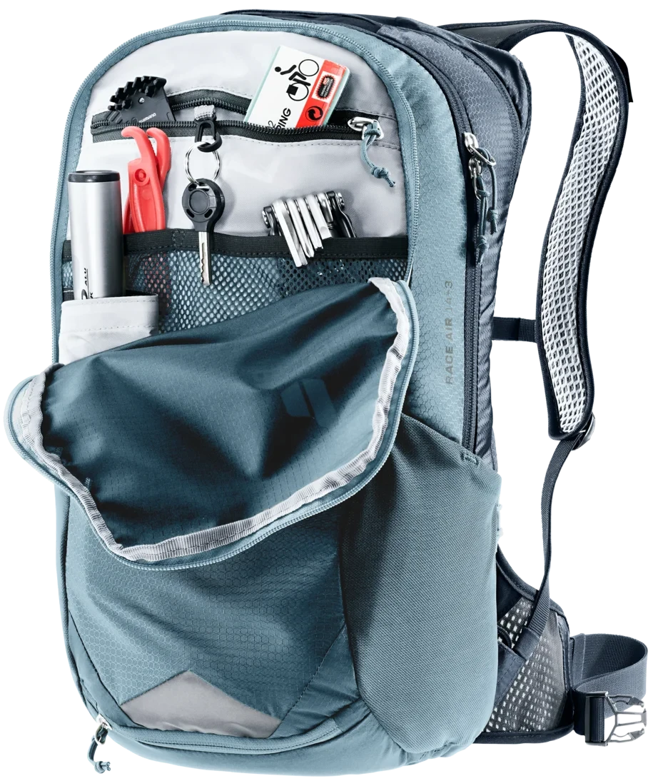 - Vortasche mit groĂźem Organisationsteil und RV-Netztasche fĂĽr Schlauch, Werkzeug und Pumpenhalterung