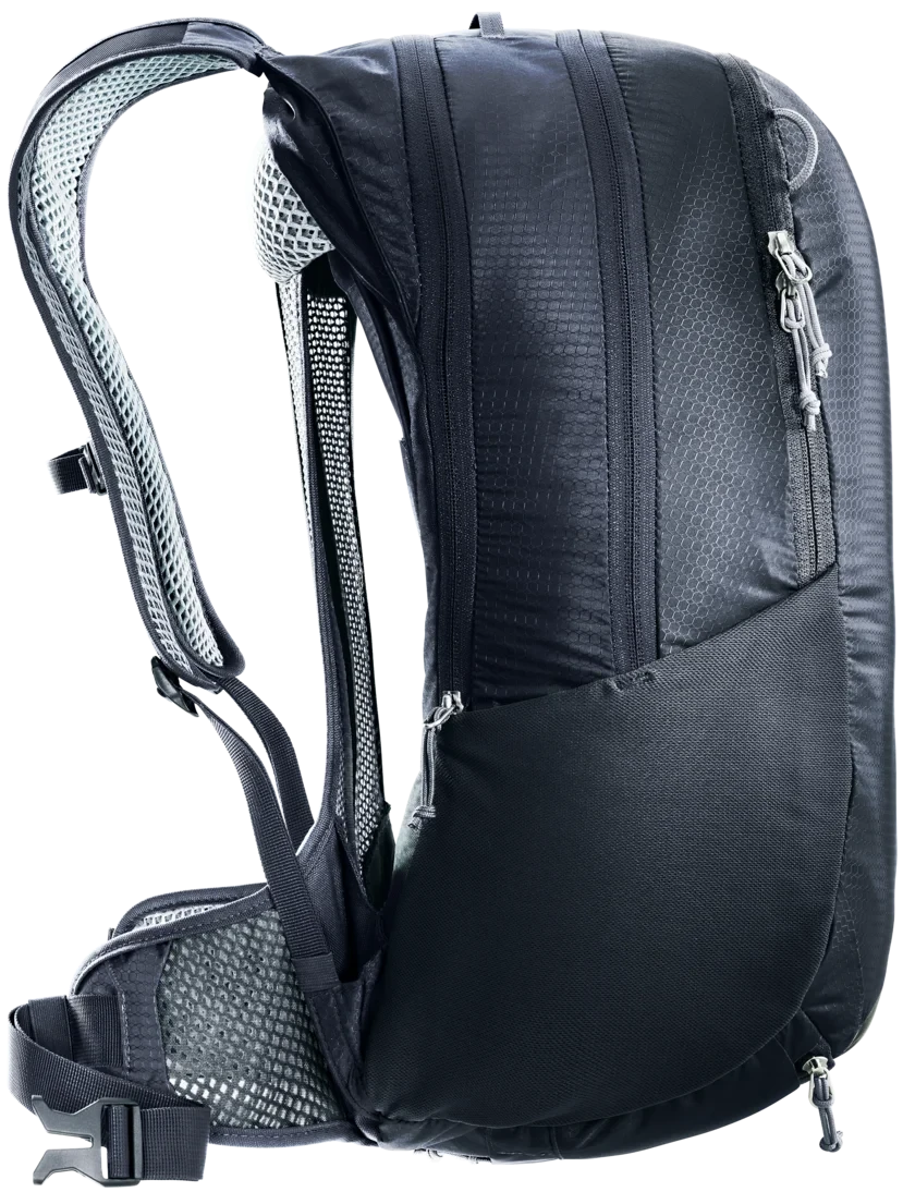 Extrem leichter, stabiler Bike-Rucksack mit hervorragender Gewicht-Komfort-Ratio. Das bikespezifische Aircomfort RĂĽckensystem mit mittig geteiltem NetzrĂĽcken reduziert die Auflagefläche und verschafft der, in Fahrhaltung gekrĂĽmmten Wirbelsäule mehr Platz. NetzhĂĽftflossen, perforierte Schulterträger und RĂĽckenpolster sorgen fĂĽr maximale BelĂĽftung und kompakten Sitz. Der klimaneutrale, PFC-freie Rucksack fĂĽr sportliche Mountainbiker*innen ist aus bluesign® zertifiziertem Hauptmaterial aus 100 % recycelten Stoffen und 100 % umweltfreundlich hergestellten, ressourcenschonenden Bestandteilen. Â