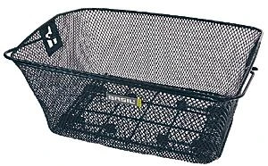 rechteckiger, engmaschiger Drahtkorb, kunststoffummantelt, mit rutschfestem „Basco“-Klemmsystem fĂŒr GepĂ€cktrĂ€gerrohr bis 12 mm, mit BĂŒgel, Korb wird quer zur Fahrtrichtung montiert