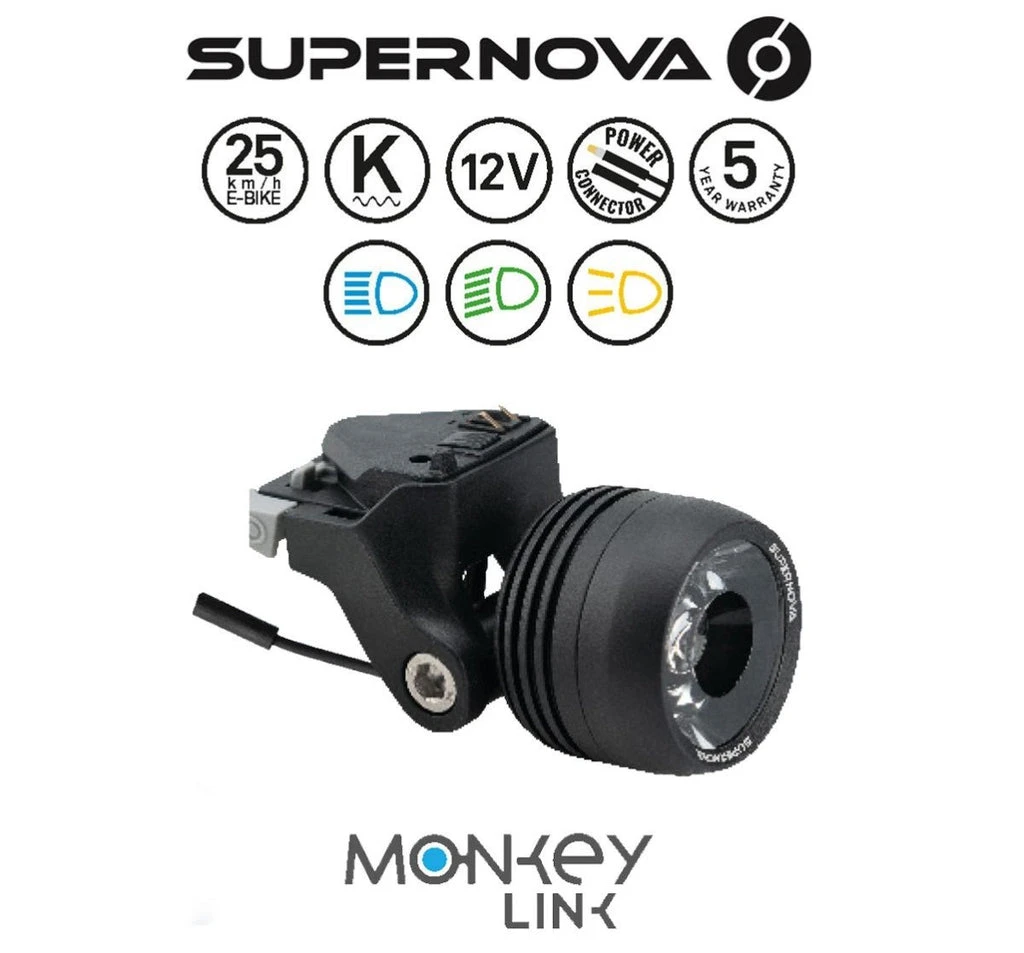 MonkeyLink ist ein revolutionärer neuer Verbindungsstandard für mechanisches und elektrisches Zubehör am E-Bike. Mit ihm kann man im Handumdrehen das Licht montieren, ohne ein Kabel anstecken zu müssen. Hierdurch wird das Nachrüsten und Umrüsten von Beleuchtung an für MonkeyLink vorbereiteten Rädern zum Kinderspiel. Natürlich gibt es für die Dauernutzung auch eine Diebstahlsicherungsfunktion. Mit dem M99 MINI PRO und dem MINI 2 bieten wir E-Bike-Scheinwerfer für die 25 km/h Klasse mit MonkeyLink Adapter an.