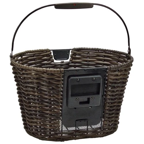 Edel und formschön â ovaler Lenkerkorb aus extra grobem, runden Kunststoffgeflecht, das weder vergraut noch versprödet. Eine robuste pulverbeschichtete Metallstruktur hĂ€lt den Korb in Form, die geschlitzte RĂŒckwand trĂ€gt die stufenlos verstellbare Adapterplatte. Mit komfortablem Griff. So macht das Einkaufen SpaĂ â einfach Taste drĂŒcken und mitnehmen.